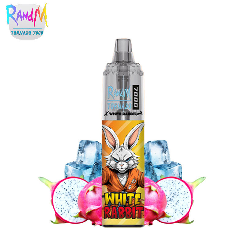 Découvrez la cigarette électronique jetable 7000 puffs avec nicotine ! Ici, c'est un fruit du dragon exotique givré qui vous attend. RandM s'est associé à White Rabbit pour vous proposer une puff qui est vendue avec un flacon de 10ml d'e-liquide à 20mg de sel de nicotine. Pour l'utiliser, c'est très simple : enlevez la cartouche de la batterie et faites le plein de votre réservoir avec le flacon d'e-liquide fourni en soulevant la membrane en silicone. La cartouche a une contenance de 8ml et elle a une résistance intégrée en 0.8ohm. Le volume de vapeur sera réglable via l'airflow qui est situé sous la batterie. Vous pourrez recharger la batterie intégrée de 1000mAh grâce au port USB-C qui est, lui aussi, sous la batterie. Dragon fruits Ice 7000 puffs Tornado RandM avec nicotine.